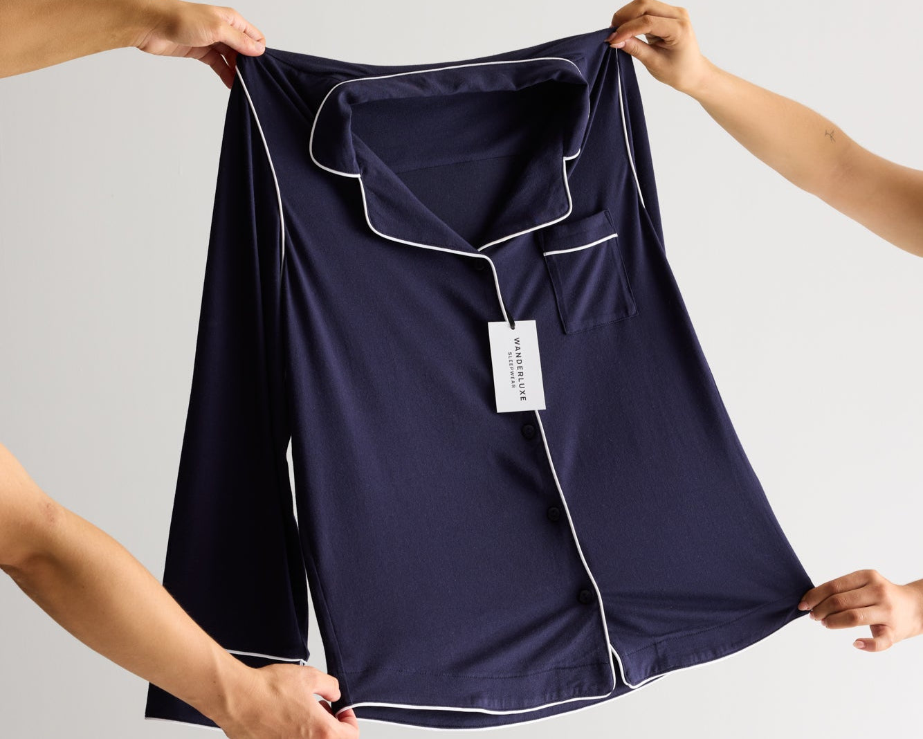 Timeless in French navy and designed for women, men, and children, it’s luxury sleepwear made for slow mornings and everyday moments.