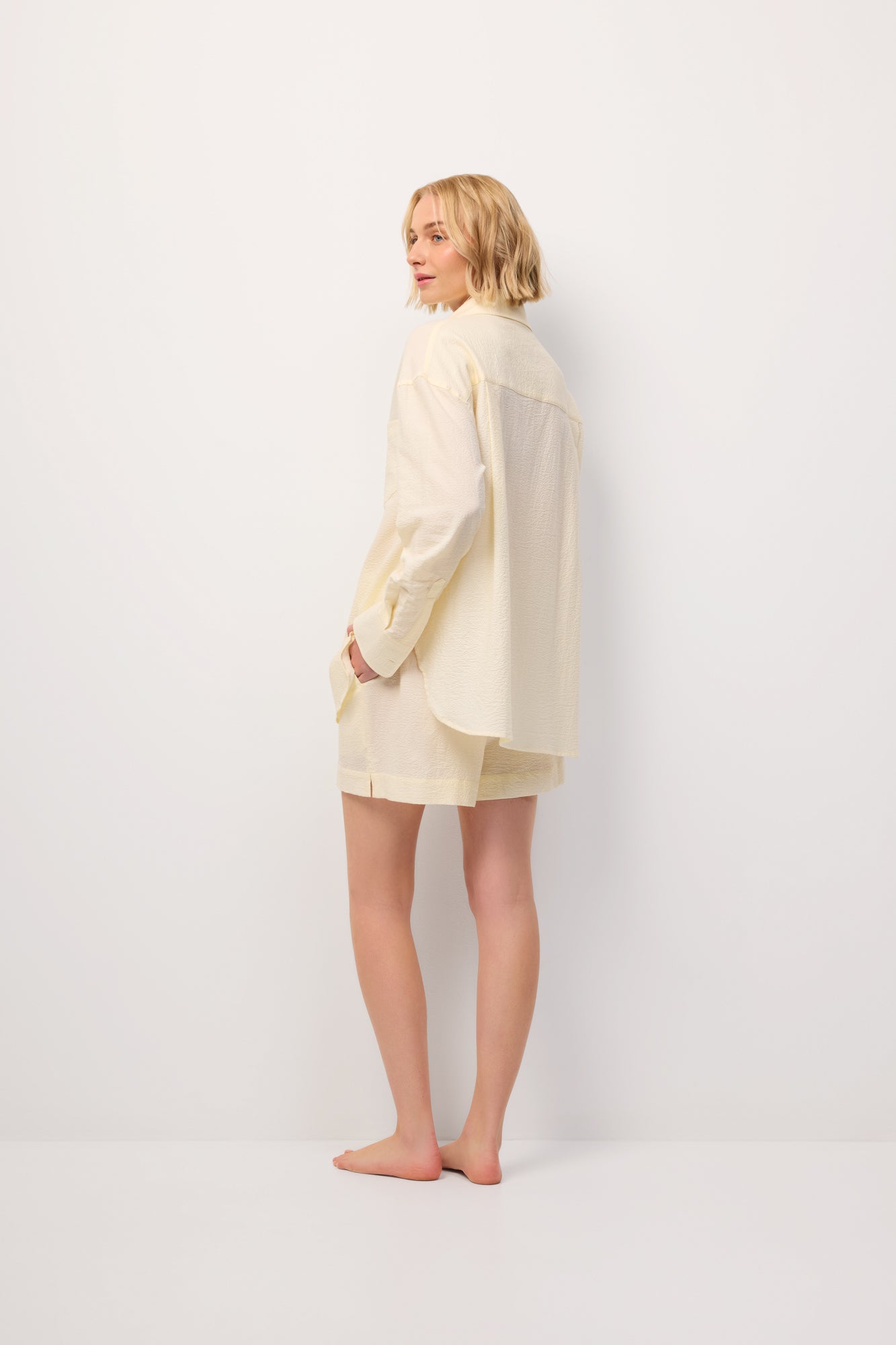 The Limoncello Boxer Set Long combines relaxed tailoring with a vibrant, modern sensibility. Made from a crisp seersucker in butter yellow, it feels bright, fresh, and refined - perfect for slow mornings, yet polished enough to wear to lunch or brunch.