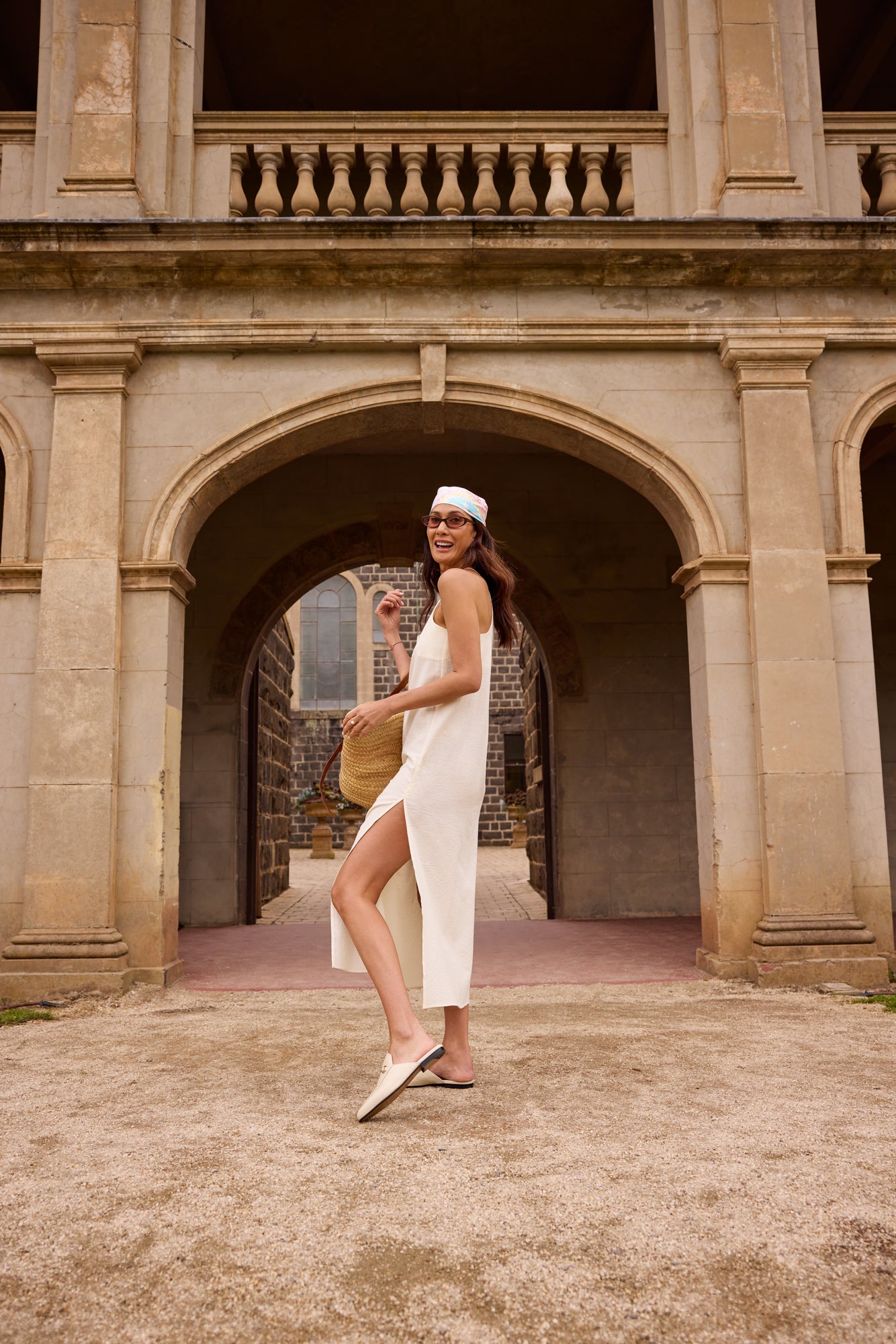 Featuring adjustable straps and a minimalist silhouette, this slip transitions effortlessly from evenings at home to beach days, brunch plans, and even dinner out. A sunlit day-to-night favourite.